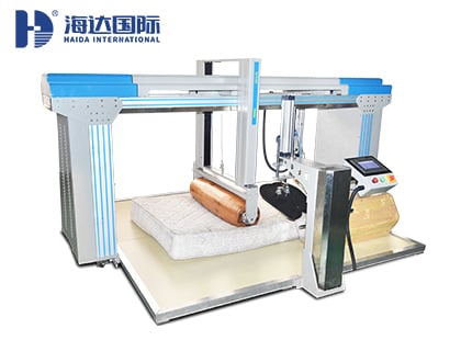 海達儀器HD-F764-S 床墊滾壓試驗儀(觸摸屏款三合一)適用于強力彈簧床墊、普通彈簧床墊、泡沫床墊、棕纖維彈性床墊的綜合力學測試。模擬人類睡眠中不斷的翻滾而設計的機器,采用一個滾動式加載模塊水平放置在床墊規定的加載部位,以一定頻率滾動,對床墊進行往復加載,以檢驗床墊對長期重復性滾動載荷的承受能力。其中還配備了包括測高、軟硬度、滾動疲勞的測試;符合國家、EN、ASTM(選購)等多個測試標準要求。